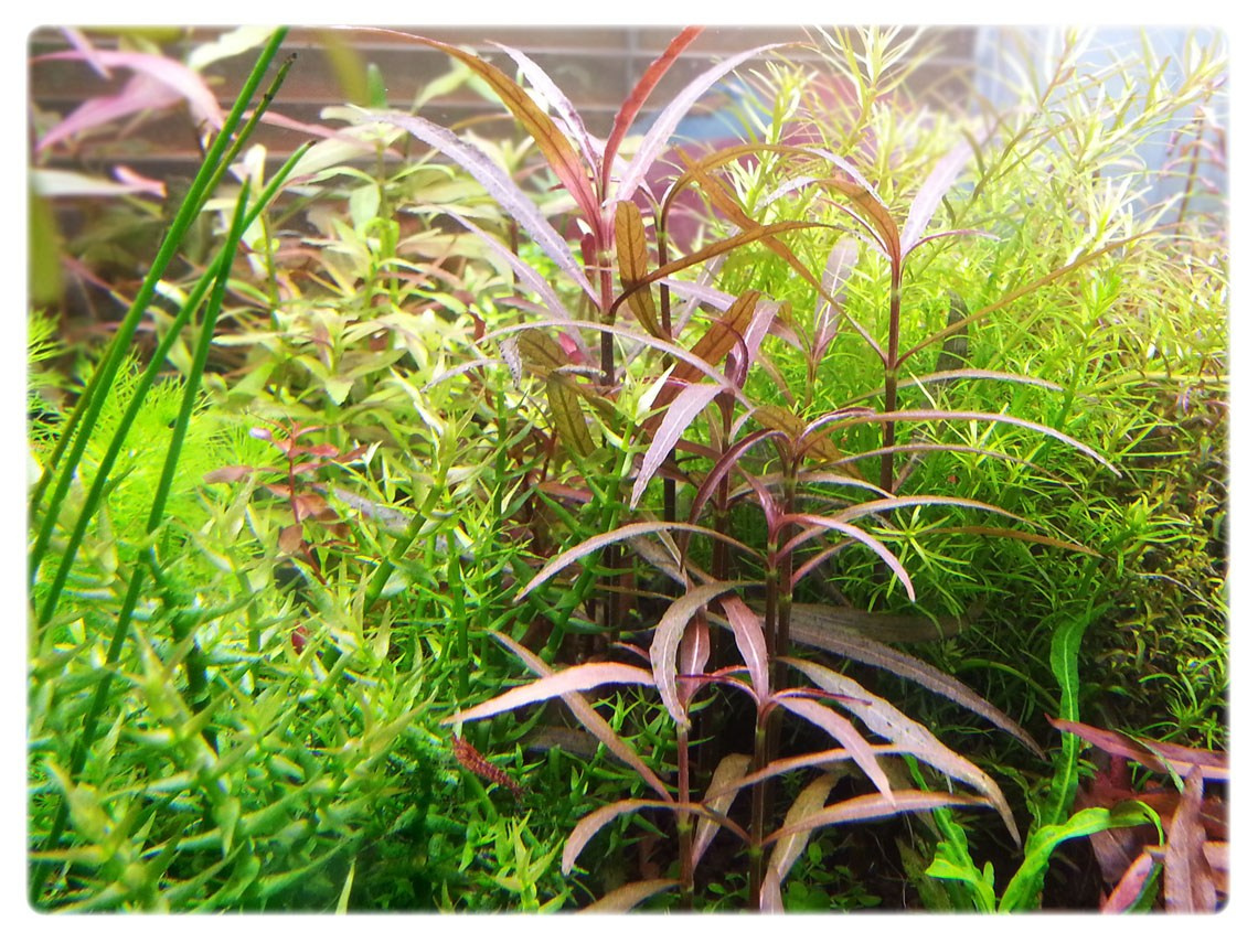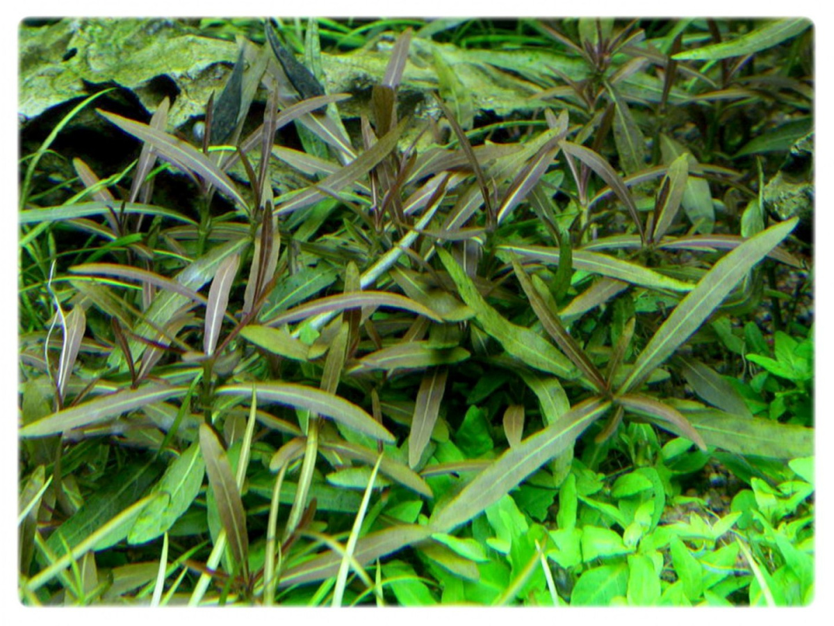 Przybiera kolory od brązu, przez bordo, aż do fioletu. Barwa uzależniona jest od warunków panujących w zbiorniku. Można ją sadzić z przodu oraz w środkowej części akwarium, gdzie stworzy efektowne urozmaicenie i kontrast wśród zielonych roślin. Regularnie przycinana chętniej rozkrzewia się na boki. W dobrze oświetlonych zbiornikach i regularnie przycinana utrzymuje zwartą formę i wówczas nadaje się do sadzenia na drugim planie oraz w przedniej części dużego akwarium. W słabo oświetlonych zbiornikach i nie przycinana potrafi osiągnąć sporą wysokość sięgającą nawet tafli wody wysokiego akwarium.