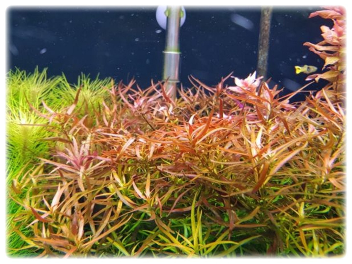 Ludwigia bezogonkowa to drobna roślina na trzeci i drugi plan zbiornika. Rośnie dość szybko i chętnie się rozkrzewia. W dobrych warunkach wybarwia się na czerwono-pomarańczowy kolor. W dolnej części łodygi wypuszcza mnóstwo bocznych pędów tworząc zwartą grupę. Bardzo ładnie prezentuje się na czarnym tle lub wśród innych drobnych zielonych roślin jak np. Hemianthus micranthemoides.