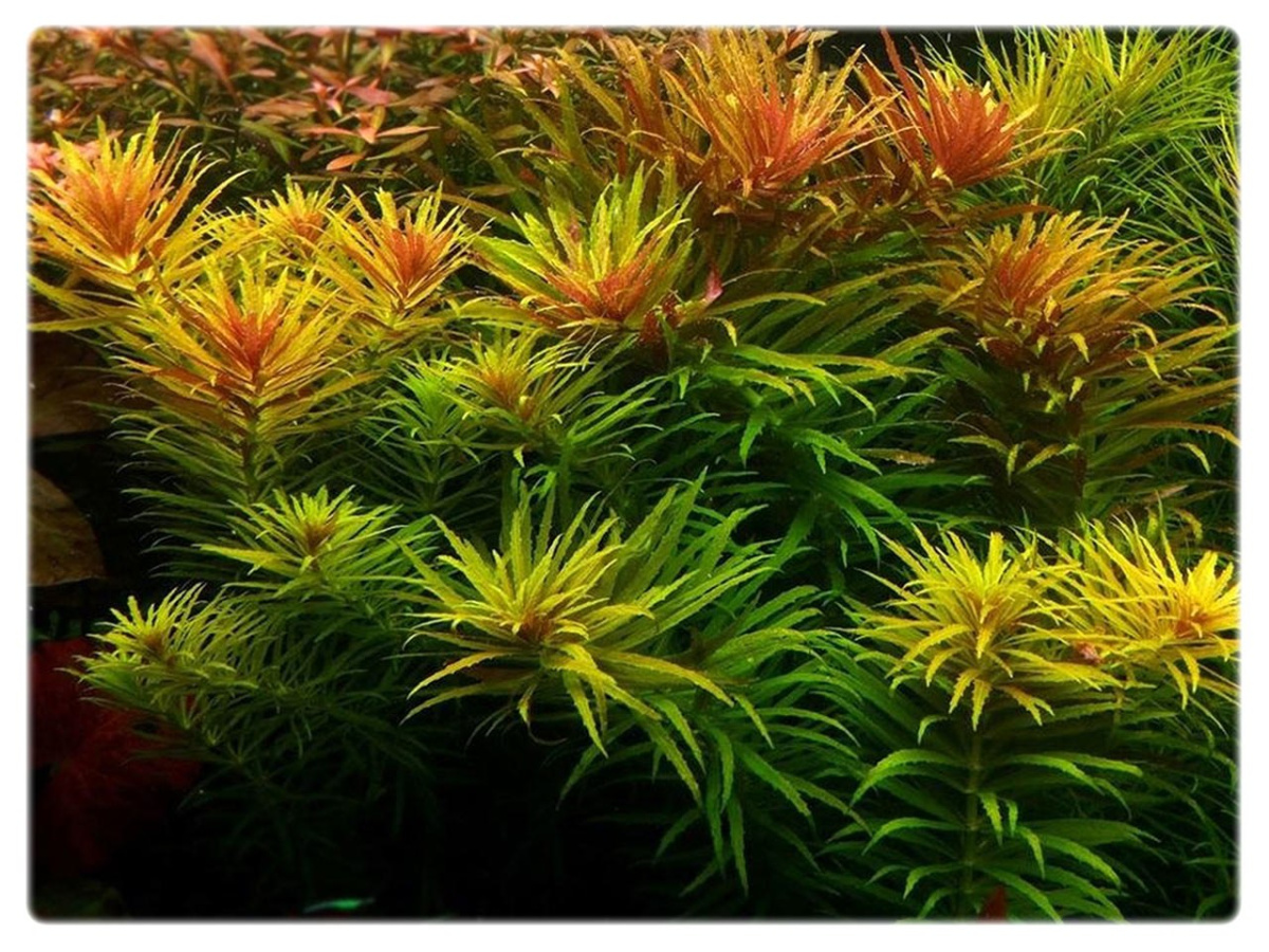 Bardzo dekoracyjna i duża roślina łodygowa na drugi oraz trzeci plan akwarium. W dobrych warunkach średnica jednej sadzonki potrafi osiągnąć 7-8 cm. Posiada wąskie (4-6 mm) i długie (3-4 cm) listki, które bujnie porastają grubą i sztywną łodyżkę. Zwykle bywa koloru jasno-zielonego jednak górna część rośliny wybarwia się na kolor pomarańczowy, aż do czerwonego (w zależności od mocy oświetlenia). Roślina rośnie dość szybko, a rozmnażanie następuje poprzez odcięcie bocznych pędów oraz zbyt długiego wierzchołka.