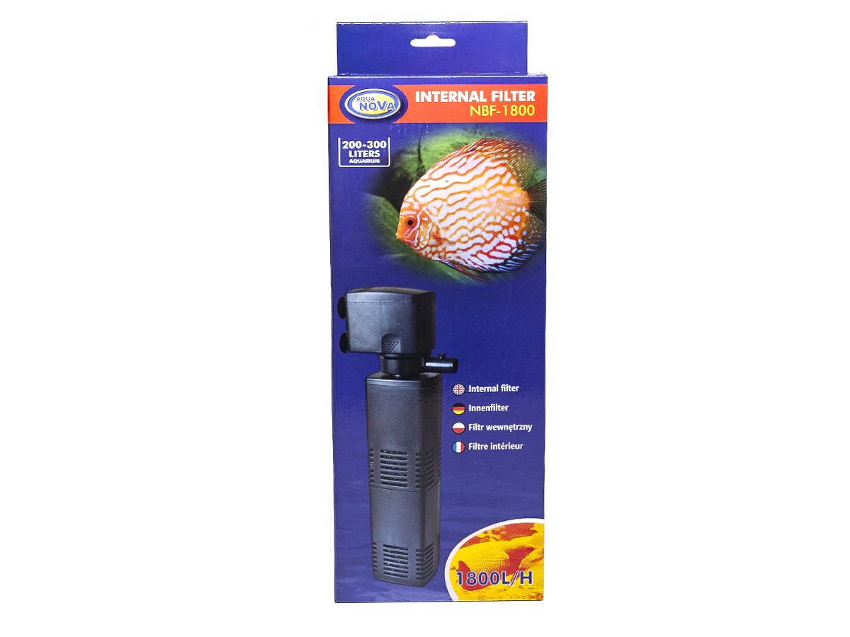 Filtr wewnętrzny turbinowy o wydajności 1800 litrów na godzinę. Nadaje się do filtracji wody w akwarium o pojemności od 200 do 300 litrów.
