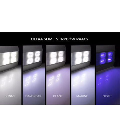 Ultra Slim BT to akwarystyczna lampa ledowa, wyposażona w 5 trybów świecenia, dzięki którym można używać jej we wszystkich typach zbiorników otwartych.