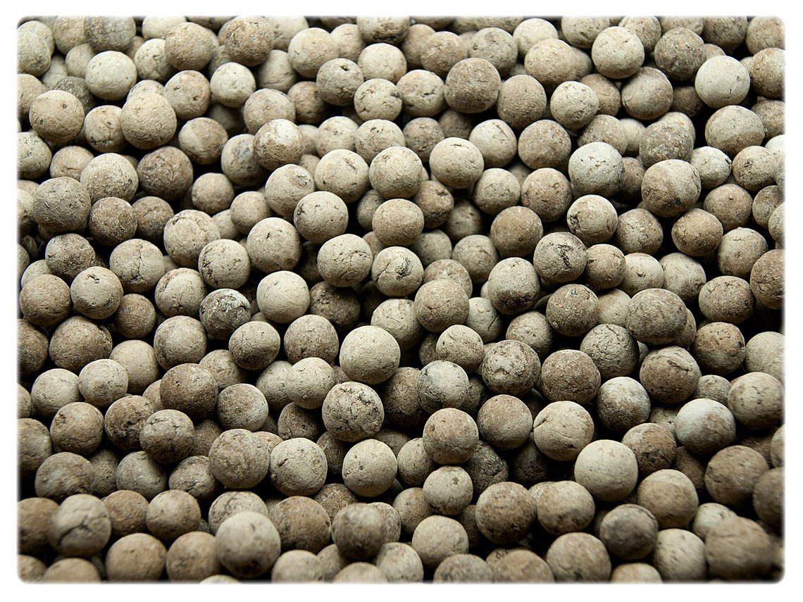 2. Mniejsza gęstość (1,8g/cm3) i unikalna struktura - powodują iż wykorzystana jest cała powierzchnia kulki a nie tylko jej zewnętrzna powłoka. Odpowiedzialne są za to mikro kanaliki i pory które tworzą włókna torfowe w całej masie każdej kulki. Dzięki temu aquahobby CLAY BALLS uwalniają dobroczynne substancje przez długi czas - nawet do 3 miesięcy.