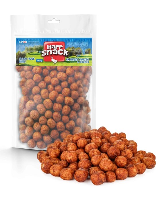 Chrupiące kuleczki z kaczką - smakowita przekąska dla psa (500 g) Rozpieszczaj swojego pupila wyjątkową przekąską! Chrupiące kuleczki z kaczką to idealne połączenie smaku i chrupkości, które zachwyci nawet najbardziej wybredne psy. Dzięki wysokiej zawartości kaczki (aż 50,8%), kuleczki są bogate w białko, które wspiera zdrową masę mięśniową i dostarcza niezbędnych składników odżywczych. Dodatek mąki ryżowej i skrobi ze słodkich ziemniaków sprawia, że przysmak jest lekkostrawny i delikatny dla żołądka. Te smakowite kuleczki mają unikalną, chrupiącą strukturę, która pomaga w mechanicznym czyszczeniu zębów i redukcji płytki nazębnej. Dzięki olejowi sojowemu i witaminom C oraz E wspierają zdrową skórę i lśniącą sierść. Zawarte w składzie ekstrakt drożdżowy i gliceryna dbają o doskonały smak i wilgotność przekąski, sprawiając, że jest ona atrakcyjna dla psów w każdym wieku. Dzięki małemu, poręcznemu rozmiarowi, kuleczki świetnie sprawdzą się jako nagroda podczas treningu lub smaczna przekąska między posiłkami. Ich różnorodna kolorystyka - jasnopomarańczowy, ciemnopomarańczowy, jasnobrązowy i ciemnobrązowy - dodatkowo przyciąga uwagę i zachęca do jedzenia. Większe opakowanie 500 g to świetny wybór dla właścicieli, którzy chcą mieć zapas ulubionej przekąski swojego pupila na dłużej! Waga: 500 g Skład: kaczka 50,8%, mąka ryżowa 18%, skrobia ze słodkich ziemniaków 12%, mąka wysokoglutenowa 9%, gliceryna 5%, olej sojowy 2%, sorbitol 2%, ekstrakt drożdżowy 1%, sól 0,2%, witaminy C i E Analiza składu: białko 18%, tłuszcz 3.3%, popiół 4.5%, włókno 1.6%, wilgotność 18%