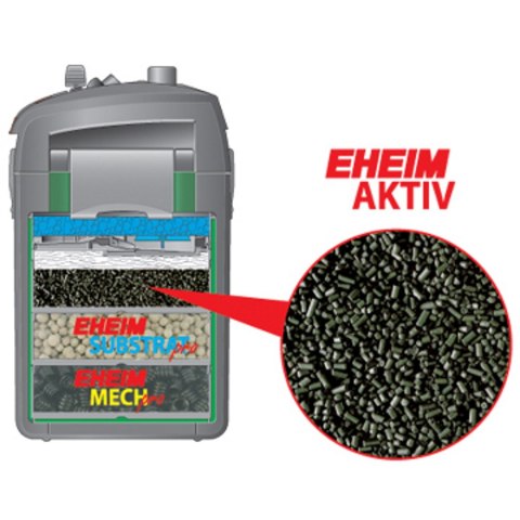 EHEIM AKTIV jest myty kwasem i aktywowany do samoczynnej absorpcji wody (powierzchnia czynna 1200 m²/g). Dlatego ten węgiel aktywny bardzo szybko wiąże zanieczyszczenia chemiczne, takie jak pestycydy, pozostałości leków i inne substancje i magazynuje je w dużych ilościach. Woda w akwarium staje się krystalicznie czysta. Szczególnie ważne jest stosowanie go po kuracji farmakologicznej mieszkańców akwarium.