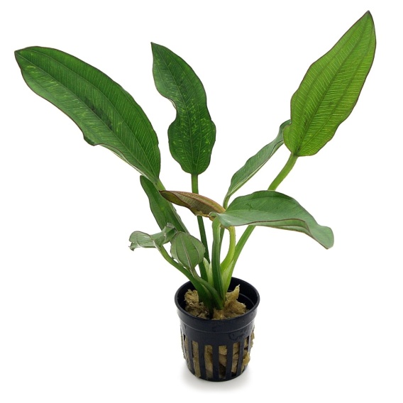 Echinodorus ‘Red Edge’ to efektowna odmiana żabienicy wyróżniająca się masywnymi, lancetowatymi liśćmi oraz charakterystyczną, czerwoną obwódką blaszki. Roślina dorasta do ok. 30–50 cm wysokości, dlatego doskonale uzupełnia tylny lub środkowy plan zbiornika.