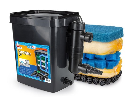 BIOfiltr UV Biofiltr UV to zestaw filtracyjny do oczka lub stawu wodnego. Filtr posiada dołączoną do zestawu lampę UV o mocy 11W, która sterylizuje wodę, niszczy wszelkie drobnoustroje, pierwotniaki i bakterie chorobotwórcze. Pomaga utrzymać krystalicznie czystą wodę niszcząc glony szczególnie dokuczliwe przy zakwicie tzw. efektem zielonej wody. Sterylizator to jeden ze skuteczniejszych sposobów na walkę z glonami i czynnikami chorobotwórczymi. Lampa pozwala na utrzymanie oczka wodnego w dobrej kondycji bez użycia środków chemicznych. Zawiera kompletne wkłady, które filtrują wodę pod względem mechanicznym oraz biologicznym: mechanicznie - zatrzymuje na gąbce jak również na substracie filtracyjnym wszelkie zanieczyszczenia i zawiesinę unoszącą się w wodzie biologicznie - utrzymuje równowagę biologiczną w stawie. Pożyteczne bakterie NITRYFIKACYJNE znajdują idealne siedlisko we wszystkich warstwach filtracyjnych filtra. Mają one szczególnie dużą powierzchnię czynną, a namnażające się bakterie rozkładają wszelkie szkodliwe substancje. lampa UV o mocy 11W sterylizuje wodę Media filtracyjne: włóknina filtracyjna - filtracja mechaniczna - umożliwia usuwanie nawet najdrobniejszych zanieczyszczeń biogąbka - filtracja mechaniczna - umożliwia usuwanie grubszych zanieczyszczeń mata japońska - filtracja mechaniczna oraz biologiczna - doskonały materiał do filtrowania mechanicznego jest również doskonałym podłożem dla kultur bakterii nitryfikacyjnych odpowiedzialnych za filtrację biologiczną biobale - posiadają użebrowania oraz małe otwory na obu biegunach. Istotą działania jest zróżnicowanie warunków tlenowych dla procesów biologicznych. Na powierzchni zewnętrznej kul istnieją warunki tlenowe korzystne dla procesów utleniania związków organicznych. Powierzchnia wewnętrzna kuli działa jak mikroreaktor anoksyczny, gdzie zachodzą procesy redukcji związków organicznych, co z kolei pozwala na bardzo efektywne oczyszczanie wody, dzięki czemu woda w oczku ma odpowiednie parametry biologiczne i jest klarowna. Instrukcja [pdf] Dane techniczne: Pojemność filtra: 33 l Pojemność stawu do 10 000 l Zalecana wydajność pompy: do 2000 l/h Moc lampy: UV 11 W Wlot: 20/25/32/40 mm Wylot: 32 mm Wymiary: 56 x 37 cm