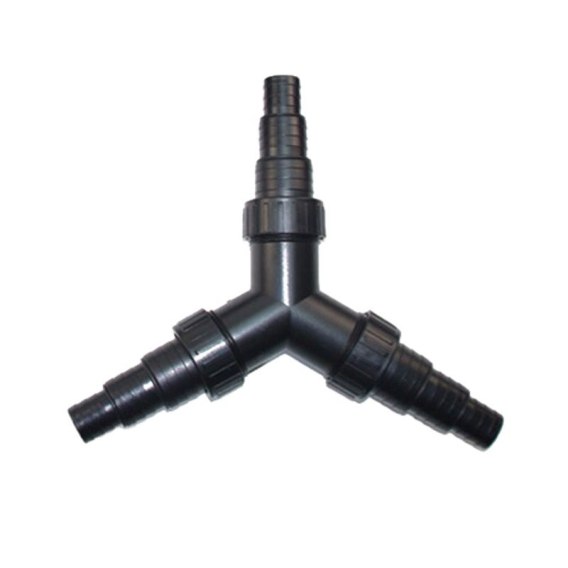 Uniwersalny trójnik / rozdzielacz do węży ogrodowych oraz akwarystycznych. Trójnik posiada króćce przyłączeniowe umożliwiające zaadoptowanie przewodów o średnicy 25mm, 32, oraz 40mm.