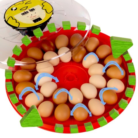Wylęgarnia posiada wbudowany silniczek, który będzie poruszał kratką wewnątrz pojemnika. Tym samym jajka będą się obracać. Automatyczne obracanie trwa 10 - 15 sekund i załącza się co dwie godziny.
