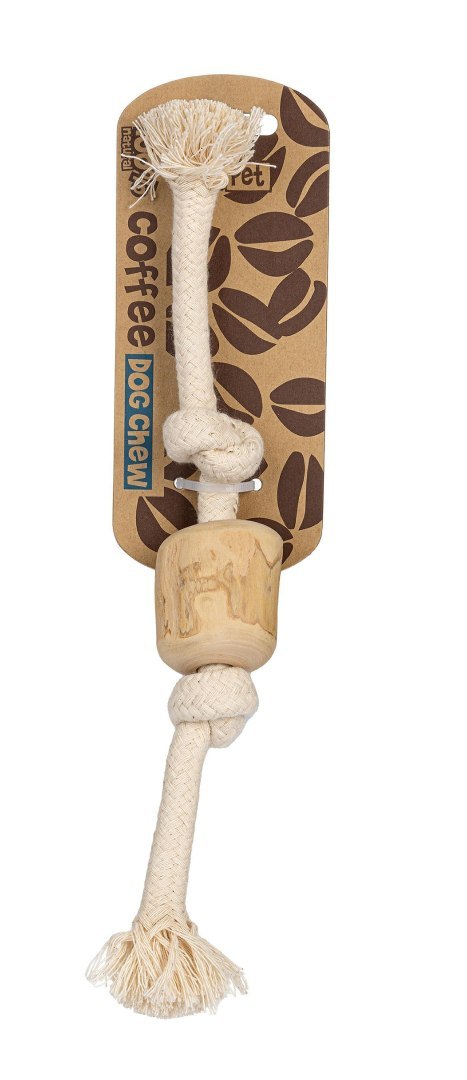 Szarpak bawełniany z drzewa kawowego M Szarpak z drzewa kawowego ze sznurkiem bawełnianym to w 100% naturalny produkt! Taka zabawka jest przyjazna dla środowiska, bezpieczna dla psa i po porstu trwała. Zapewnia zatem długie godziny wyśmienitej zabawy i okazji do realizowania naturalnych psich potrzeb! Szarpak wykonany z naturalnych materiałów łączy w sobie drewno kawowe z bawełnianym sznurkiem. Zabawka nie zawiera żadnych sztucznych składników. Mimo że powstała z drzewa kawowego, nie zawiera także kofeiny. Zabawki w formie szarpaków są idealne do wspólnej zabawy psa i opiekuna. Podczas przeciągania szarpaka lub jego aportowania, nawiążesz i umocnisz swoją więź z pupilem. Zadbasz również o jego potrzeby behawioralne i kondycję. Psy uwielbiają gryzienie, szarpanie i aportowanie. Fragmenty z drzewa kawowego są twarde i nie kruszą się jak zwykłe patyki. Unikasz tym samym niebezpiecznych dla psa ostrych fragmentów. Szarpaki dla psów dostępna są w różnych wersjach, dlatego możesz dopasować je do preferencji swojego pupila. Wybieraj spośród różnych długości sznura oraz odmiennych wielkości bloczków z drzewa kawowego. Zwróć uwagę, że w odróżnieniu od wielu kalorycznych gryzaków, szarpaki z drzewa kawowego nadają się również dla psów z nadwagą lub alergiami. Zalety szarpaków z drewna kawowego: wykonane z naturalnych materiałów trwałe bezpieczne dobre dla środowiska naturalny zapach umożliwiają psu realizację naturalnych potrzeb sprzyjają wspólnej zabawie i budowaniu więzi z psem dostępne w różnych rozmiarach i wariantach Jeżeli chcesz, by szarpak służył Twojemu psu przez długi czas, przechowuj go w suchym miejscu i unikaj wilgoci. Wymiary: 31 x 7 cm Waga: 76 g
