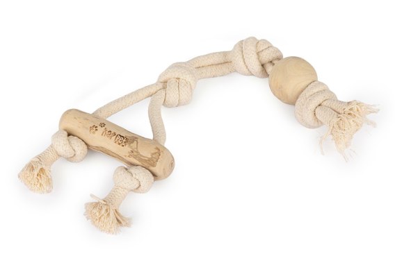 Szarpak bawełniany z drzewa kawowego M Szarpak z drzewa kawowego ze sznurkiem bawełnianym to w 100% naturalny produkt! Taka zabawka jest przyjazna dla środowiska, bezpieczna dla psa i po porstu trwała. Zapewnia zatem długie godziny wyśmienitej zabawy i okazji do realizowania naturalnych psich potrzeb! Szarpak wykonany z naturalnych materiałów łączy w sobie drewno kawowe z bawełnianym sznurkiem. Zabawka nie zawiera żadnych sztucznych składników. Mimo że powstała z drzewa kawowego, nie zawiera także kofeiny. Zabawki w formie szarpaków są idealne do wspólnej zabawy psa i opiekuna. Podczas przeciągania szarpaka lub jego aportowania, nawiążesz i umocnisz swoją więź z pupilem. Zadbasz również o jego potrzeby behawioralne i kondycję. Psy uwielbiają gryzienie, szarpanie i aportowanie. Fragmenty z drzewa kawowego są twarde i nie kruszą się jak zwykłe patyki. Unikasz tym samym niebezpiecznych dla psa ostrych fragmentów. Szarpaki dla psów dostępna są w różnych wersjach, dlatego możesz dopasować je do preferencji swojego pupila. Wybieraj spośród różnych długości sznura oraz odmiennych wielkości bloczków z drzewa kawowego. Zwróć uwagę, że w odróżnieniu od wielu kalorycznych gryzaków, szarpaki z drzewa kawowego nadają się również dla psów z nadwagą lub alergiami. Zalety szarpaków z drewna kawowego: wykonane z naturalnych materiałów trwałe bezpieczne dobre dla środowiska naturalny zapach umożliwiają psu realizację naturalnych potrzeb sprzyjają wspólnej zabawie i budowaniu więzi z psem dostępne w różnych rozmiarach i wariantach Jeżeli chcesz, by szarpak służył Twojemu psu przez długi czas, przechowuj go w suchym miejscu i unikaj wilgoci. Wymiary: 38 x 10 cm Waga: 140g
