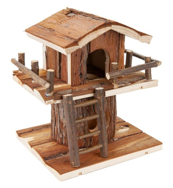 Happet Domek Piętrowy dla Chomika 21 cm – Naturalne Drewno