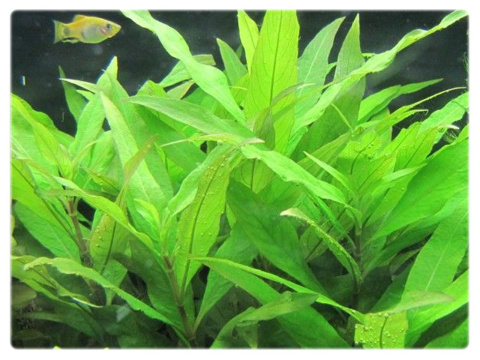 Nadwódka Szerokolistna to bardzo łatwa w uprawie roślina na trzeci plan akwarium. Potocznie nazywana jest orzechem wodnym. Ma bardzo dobrze rozbudowany system korzeniowy dlatego grubość podłoża powinna wynosić minimum 6cm. Ma długie dorastające do 8cm liście, które przy mocnym oświetleniu wybarwiają sie na czerwono-brązowy kolor. Nieprzycinana wyrasta ponad powierzchnię wody, gdzie wyrastają piękne błękitne kwiaty. Rozmnażanie podwodne następuje poprzez odcięcie wierzchołka.