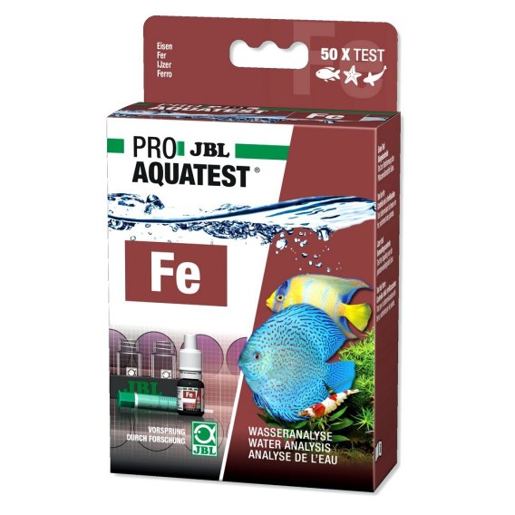 Właściwe parametry wody w akwarium/stawie zależą od obsady ryb i roślin. Także jeżeli woda wygląda jak przezroczysta, może być zanieczyszczona. Przy złych wartościach mogą tworzyć się choroby lub glony w akwarium/stawie. Dla zdrowego akwarium/stawu z niemal naturalnymi warunkami ważna jest regularna kontrola i dostosowanie parametrów wody. Dlaczego testować? Poza wystarczającym zasilaniem w CO2 niezbędnymi do życia dla roślin wodnych są żelazo i pierwiastki śladowe. Ponieważ dobrze rosnące rośliny wodne ciągle zużywają żelazo i inne pierwiastki śladowe i są one w wodzie także typowe przy połączeniach z tzw. chelatorami, jak to jest zwykle w nowoczesnych preparatach do nawożenia (np. JBL Ferropol, JBL Fe +Microelements), są one trwałe tylko przez ograniczony czas, należy sprawdzać zawartość żelaza przez regularną kontrolę za pomocą JBL żelazo Zestaw testów Fe i ew. dodawać nawóz. Właściciele stawów ogrodowych powinni sprawdzić swoją wodę ze studni pod kątem zawartości żelaza, zanim użyją wody ze studni do swojego stawu. Za wysoka zawartość żelaza prowadzi do problemów w stawie.