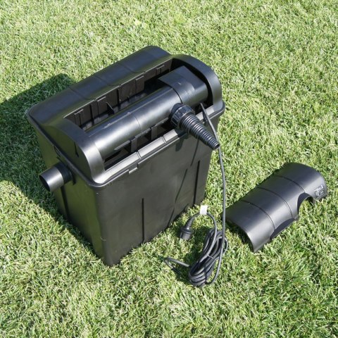 Bardzo pojemny filtr do oczka wodnego, zapewniający optymalną filtracje mechaniczną oraz biologiczną. Dodatkowo filtr posiada lampę UV o mocy 9W zamontowaną w celu zapobiegania powstawaniu glonów. Filtr doskonale sprawdzi się do obsługi oczka o pojemności do 8000l.
