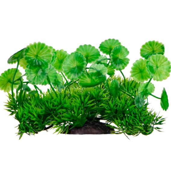 Zbuduj w akwarium zieloną łąkę z charakterem dzięki Kruger Meier Plant - Meadow. U podstawy rozciąga się gęsta trawa w odcieniach jasno- i ciemnozielonym, tworząc miękki dywan przypominający naturalne poszycie. Nad nią wyrastają większe rośliny - każda z jednym liściem przypominającym parasolkę. Liście te różnią się wielkością, co daje efekt głębi i dzikiej, tętniącej życiem łąki.