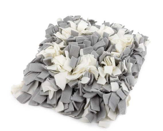 Z czym kojarzy Ci się zabawka dla Twojego pupila? Z piłką, kością, a może myszką na wędce? Klasyczne rozwiązania wydają się być niezastąpione, jednak wymagają Twojego ciągłego zaangażowania. Nasza mata węchowa zapewni Twojemu psu i kotu zdrową rozrywkę, podczas gdy Ty będziesz mógł znaleźć trochę czasu dla siebie. Wystarczy, że poświęcisz chwilę na schowanie w macie przysmaków, a Twój pupil będzie miał ciekawą i rozwijającą rozrywkę na dłuższy czas Polecana przez behawiorystów, ułatwia pracę nad problemem zbyt szybkiego jedzenia i nadpobudliwością pupila, oraz pomaga w zrelaksowaniu się i uczy skupienia. Stymuluje zmysł węchu, pobudzając intelektualnie zwierzaka. Dostępne w naszej ofercie maty węchowe są wyprodukowane z wysokiej jakości materiału polarowego, zszywanego ręcznie z myślą o trwałości i praktyczności zabawki. Podstawę wykonaliśmy z mocnego tworzywa, które mocno oplata materiał, dbając o to, aby nie pojawił się żaden otwór, przez który mógłby wypaść smaczek i popsuć zabawę. Szeroki wybór kolorów zaspokoi nawet najbardziej wymagające gusta. Matę można bez problemu prać w pralce, jest komfortowa i wygodna w użytkowaniu. Mata węchowa to świetny sposób na zapewnienie rozrywki Twojemu zwierzakowi, który łączy dobrą zabawę z rozwojem i nauką. Kolor: biało-szary Wymiary: 40x40 cm
