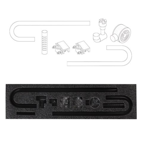 W zestawie są dwie sztuki. Tak jak reszta elementów, całkowicie przezroczysty i wytrzymały. Zapewnia mocny i pewny chwyt rurek. Pasuje do szyb od 14 do 4mm grubości.
