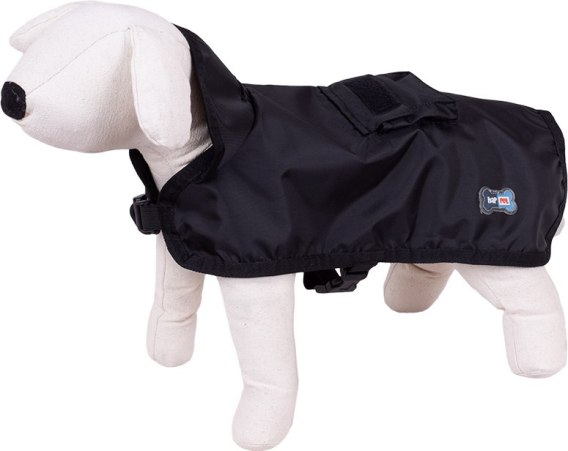 Ubranko przeciwdeszczowe dla bardzo dużego psa Ochrona przed deszczem w rozmiarze XL Deszczowa pogoda ma tyle samo zwolenników, co przeciwników. Zdarzają się tacy, co nie wyjdą z domu przy najmniejszej mżawce, inni z kolei z uciechą wskakują w błotniste kałuże i nawet największa ulewa im nie straszna. W podobny sposób dzielą się charaktery wśród naszych szczekających pupili- Twój labrador radośnie wybiegnie z domu w kroplach deszczu, ucieszony zapachem świeżej ziemi, a mops Twojej sąsiadki wyjdzie tylko załatwić najpilniejsze sprawy i resztę dnia spędzi czekając na zmianę pogody. Bez względu na podejście pupila do warunków pogodowych, jedno jest pewne- jeśli piesek zmoknie, to powrót do domu będzie łączył się z intensywnym otrzepywaniem sierści i ubłoconym dywanem. Rozwiązaniem tego problemu może być nasz kieszonkowy płaszcz przeciwdeszczowy dla psa. Produkt ten wykonany został z wygodnego, oddychającego materiału, aby nie powodować żadnego dyskomfortu podczas użytkowania. Wierzchnia warstwa jest nieprzemakalna, nie przykleja się do niej również ziemia. Peleryna łatwo zapina się na klamry, paski mocujące umieszczone są na klatce piersiowej psa oraz nad przednimi nogami. Po zdjęciu peleryny można spakować ją do wygodnej sakiewki, która podczas noszenia znajduje się na plecach pupila, a po spakowaniu zajmuje niewiele miejsca i wyposażona jest w haczyk. W razie potrzeby, płaszcz można prać w pralce w 30 stopniach. Dostępne są kolory czarny i oliwkowozielony, oraz rozmiary XS (30cm), S (40cm), M (50cm), L (60cm), XL (70cm). Rozmiar: XL, 70 cm długości Materiał wykonania: ortalion, wodoodporna membrana Kolor: czarny