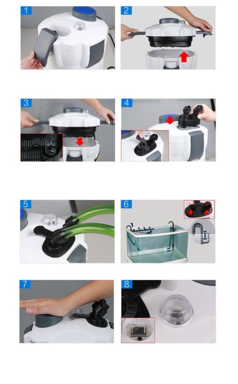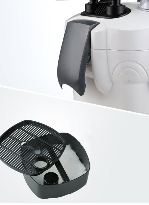 Filtr HW-303A posiada specjalny system aqua-stop, który blokuje dopływ wody z filtra do węży, umożliwiając ich odłączenie od pokrywy. System ten będzie niezbędny do przeprowadzenia jakichkolwiek prac pielęgnacyjnych w akwarium.