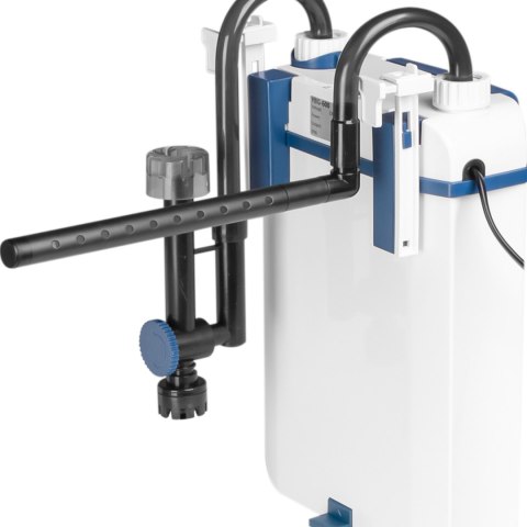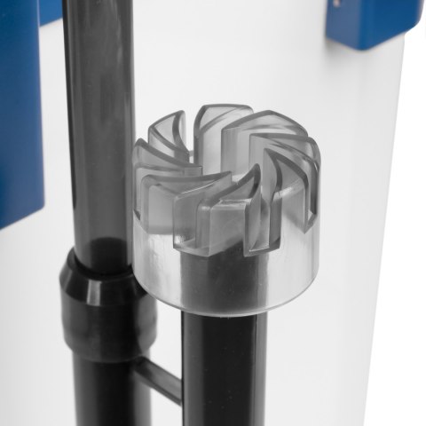 - Podwójny wlot wody: filtr zaciąga wodę poprzez skimmer, tuż przy powierzchni wody oraz poprzez koszyk przy dnie akwarium. Specjalne pokrętło reguluje ile wody filtr pobiera z "dołu lub z góry".