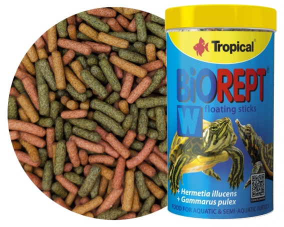 Tropical Biorept W to pełnoporcjowa karma w formie pałeczek, przeznaczona do codziennego karmienia dorosłych wszystkożernych i mięsożernych żółwi wodnych oraz wodno-lądowych. Zawiera wartościowe składniki pochodzenia zwierzęcego, takie jak skorupiaki, ryby i larwy muchy czarnego żołnierza (BSF – Hermetia illucens), które doskonale odpowiadają naturalnym potrzebom pokarmowym tych gadów.