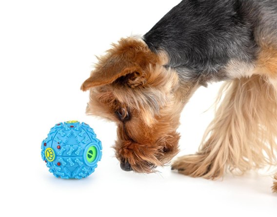 Zabawka do chowania przysmaków Wszyscy kochamy bawić się ze swoimi pupilami, jednak oczywistym jest, że każdy potrzebuje też czasu dla siebie. Co możemy więc zrobić, kiedy pies czy kot nadal chcą się z nami bawić, a my musimy mu odmówić? Dobrym pomysłem będzie zabawka, w której możesz schować przysmak. Takie rozwiązanie pozwoli Twojemu zwierzakowi na długie godziny zabawy w pojedynkę, a ponieważ węch psów i kotów jest niesamowicie mocny i stanowi bardzo ważny receptor poznania, spożytkują na zabawie sporo energii w zdrowy sposób. Jak to działa? Do otworu w piłce włóż ulubiony przysmak pupila. Otwór możesz całkowicie zamknąć, tak, żeby zabawka jedynie pachniała smaczkiem, lub pozostawić minimalnie otwarty, żeby ostatecznie po długiej zabawie smaczek wypadł jako nagroda dla pupila. Produkt został wykonany z wysokiej jakości winylu, materiału bezpiecznego dla zwierząt. Nadaje się zarówno dla młodszych, jak i starszych pupili.