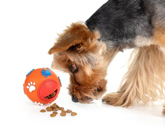 Zabawka do chowania przysmaków Wszyscy kochamy bawić się ze swoimi pupilami, jednak oczywistym jest, że każdy potrzebuje też czasu dla siebie. Co możemy więc zrobić, kiedy pies czy kot nadal chcą się z nami bawić, a my musimy mu odmówić? Dobrym pomysłem będzie zabawka, w której możesz schować przysmak. Takie rozwiązanie pozwoli Twojemu zwierzakowi na długie godziny zabawy w pojedynkę, a ponieważ węch psów i kotów jest niesamowicie mocny i stanowi bardzo ważny receptor poznania, spożytkują na zabawie sporo energii w zdrowy sposób. Jak to działa? Do otworu w piłce włóż ulubiony przysmak pupila. Otwór możesz całkowicie zamknąć, tak, żeby zabawka jedynie pachniała smaczkiem, lub pozostawić minimalnie otwarty, żeby ostatecznie po długiej zabawie smaczek wypadł jako nagroda dla pupila. Produkt został wykonany z wysokiej jakości winylu, materiału bezpiecznego dla zwierząt. Nadaje się zarówno dla młodszych, jak i starszych pupili.