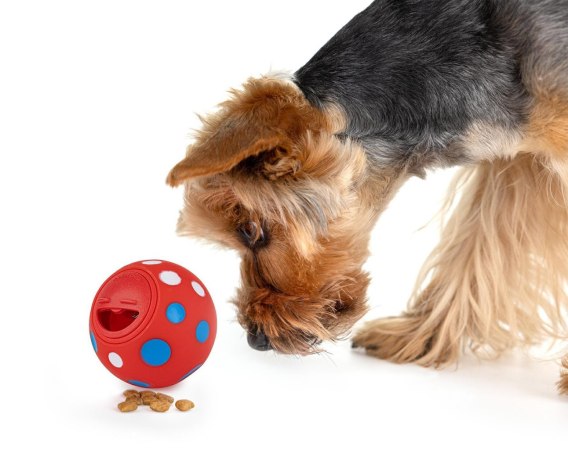 Zabawka do chowania przysmaków Wszyscy kochamy bawić się ze swoimi pupilami, jednak oczywistym jest, że każdy potrzebuje też czasu dla siebie. Co możemy więc zrobić, kiedy pies czy kot nadal chcą się z nami bawić, a my musimy mu odmówić? Dobrym pomysłem będzie zabawka, w której możesz schować przysmak. Takie rozwiązanie pozwoli Twojemu zwierzakowi na długie godziny zabawy w pojedynkę, a ponieważ węch psów i kotów jest niesamowicie mocny i stanowi bardzo ważny receptor poznania, spożytkują na zabawie sporo energii w zdrowy sposób. Jak to działa? Do otworu w piłce włóż ulubiony przysmak pupila. Otwór możesz całkowicie zamknąć, tak, żeby zabawka jedynie pachniała smaczkiem, lub pozostawić minimalnie otwarty, żeby ostatecznie po długiej zabawie smaczek wypadł jako nagroda dla pupila. Produkt został wykonany z wysokiej jakości winylu, materiału bezpiecznego dla zwierząt. Nadaje się zarówno dla młodszych, jak i starszych pupili.