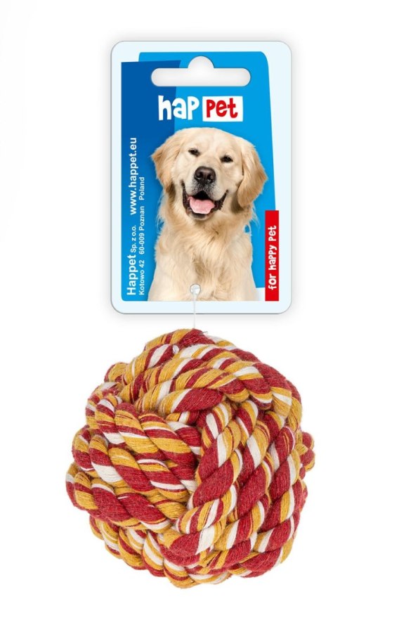 Sznurkowa kula Sznurku, co my byśmy bez Ciebie zrobili? Choć na co dzień nie zwracamy na niego uwagi, to po zastanowieniu się można dojść do wniosku, że jest to bardzo ważny dla naszego życia wynalazek. Sznurkiem wiążemy przedmioty które mają się trzymać razem, na sznurkach zawieszamy to co ma dyndać w powietrzu. Lin i sznurków używa się do wspinaczki i na budowie, oraz do mechanizmów działających na żaglówkach i statkach. Ten niepozorny przedmiot nie przestaje zaskakiwać swoją funkcjonalnością, dlatego prezentujemy serię gryzaków dla psów które są z niego zrobione. Te zabawki wytrzymają każdy nacisk szczęk i każde silne szarpnięcie. Można nimi rzucać, tarmosić je, przeciągać i robić z nimi wszystko, co tylko da Twojemu psu radość. Sznurkowe zabawki zostały wykonane z trwałego materiału, w pełni bezpiecznego dla zwierząt. Dostępne są kształty: kulka z pętlą, kulka, kulka z dwiema pętlami, marchewka, toroid. Wymiary: 8 cm Waga: 116g