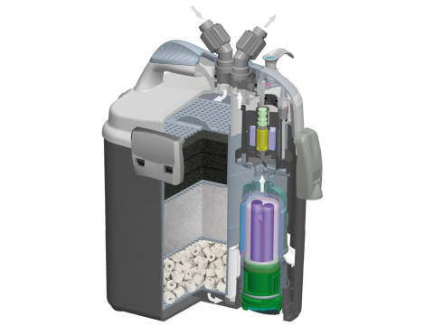 Filtry UNIMAX są uważane za jedne z najcichszych filtrów zewnętrznych na rynku. Odpowiednio dobrane media filtracyjne mechaniczne, chemiczne i biologiczne, umieszczono w 3 koszykach filtracyjnych. Duża objętość wkładów filtra UNIMAX, zapewnia długotrwałą, skuteczną oraz efektywną filtrację w akwariach do 250 l. Filtr UNIMAX wyposażony jest w deszczownię, która dodatkowo zwiększa powierzchnię kontaktu wody z powietrzem, dzięki czemu jest ona napowietrzana.