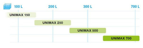 Filtry UNIMAX charakteryzują się niskim zużyciem energii i wysoką wydajnością filtra w stosunku do rekomendowanej pojemność.