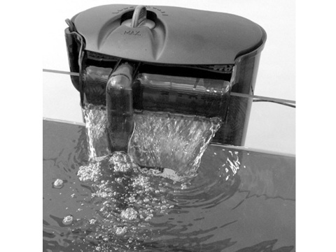 Postępując zgodnie z niniejszą instrukcją filtr po kilkunastu sekundach usunie powietrze z wnętrza rurki ssącej i rozpocznie filtrację wody przepompowując ją przez wkłady filtracyjne. Oczyszczona woda wraca do akwarium za pośrednictwem kaskady.